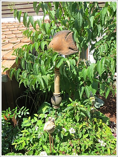So ein Huhn sitzt jetzt auch in meinem Garten und da alle ihre Töpfersachen frostfest gebrannt sind, muss ich es im Winter auch nicht wegräumen