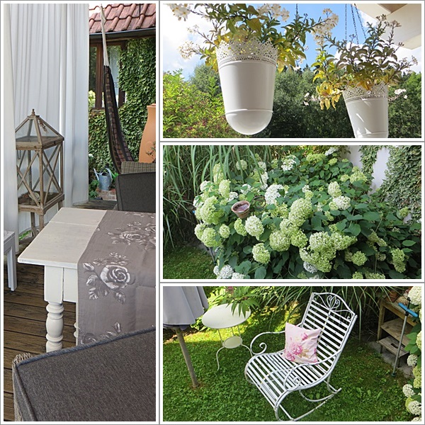Auch wenn ich eher du den Gärtnerinnen gehöre, die die Pflanzen für sich sprechen lassen, und es eher puristisch mögen, gibt es unter deinen Fotos etliche, die mir gut gefallen...z.B. der Durchblick zur Töpferei oder die Schattenbereiche. Und verwundert bin ich dann über die schlichte Einrichtung des Balkons, die mir ganz besonders zusagt in seiner farblichen Gestaltung , die weißen Vorhänge im Sommerwind....da möchte man sitzen.
